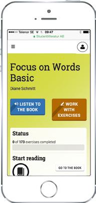 Focus on Words Basic (10-pack) – Tryckt + Digitalt är avsedd för Engelska 5, eller inför Engelska 5. Ordinlärningsstrategier och 300 ord presenteras och övas i tryckt och digitalt material. Orden introduceras i kontext genom lästexter och hörövningar.