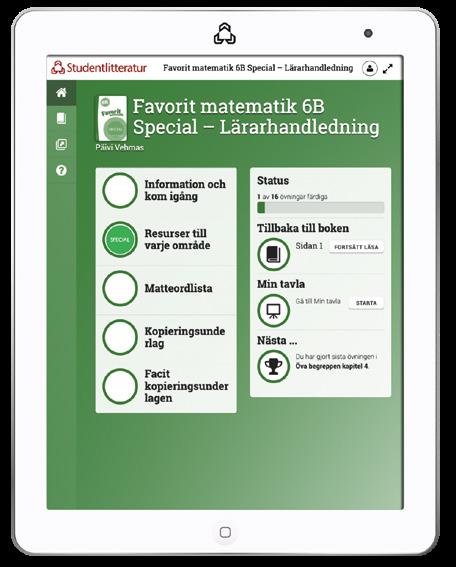 Favorit matematik 6B Special är en kompletterande lärarhandledning som är tänkt att användas av speciallärare, men även av specialpedagoger, lärare och andra professioner som kommer i kontakt med elever i behov av stöd i matematik.