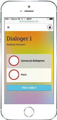 Dialogerna är sorterade i stigande svårighetsgrad och är även inlästa så att eleverna lätt kan lyssna på dem, få förståelse för uttalet och höra på dem flera gånger.