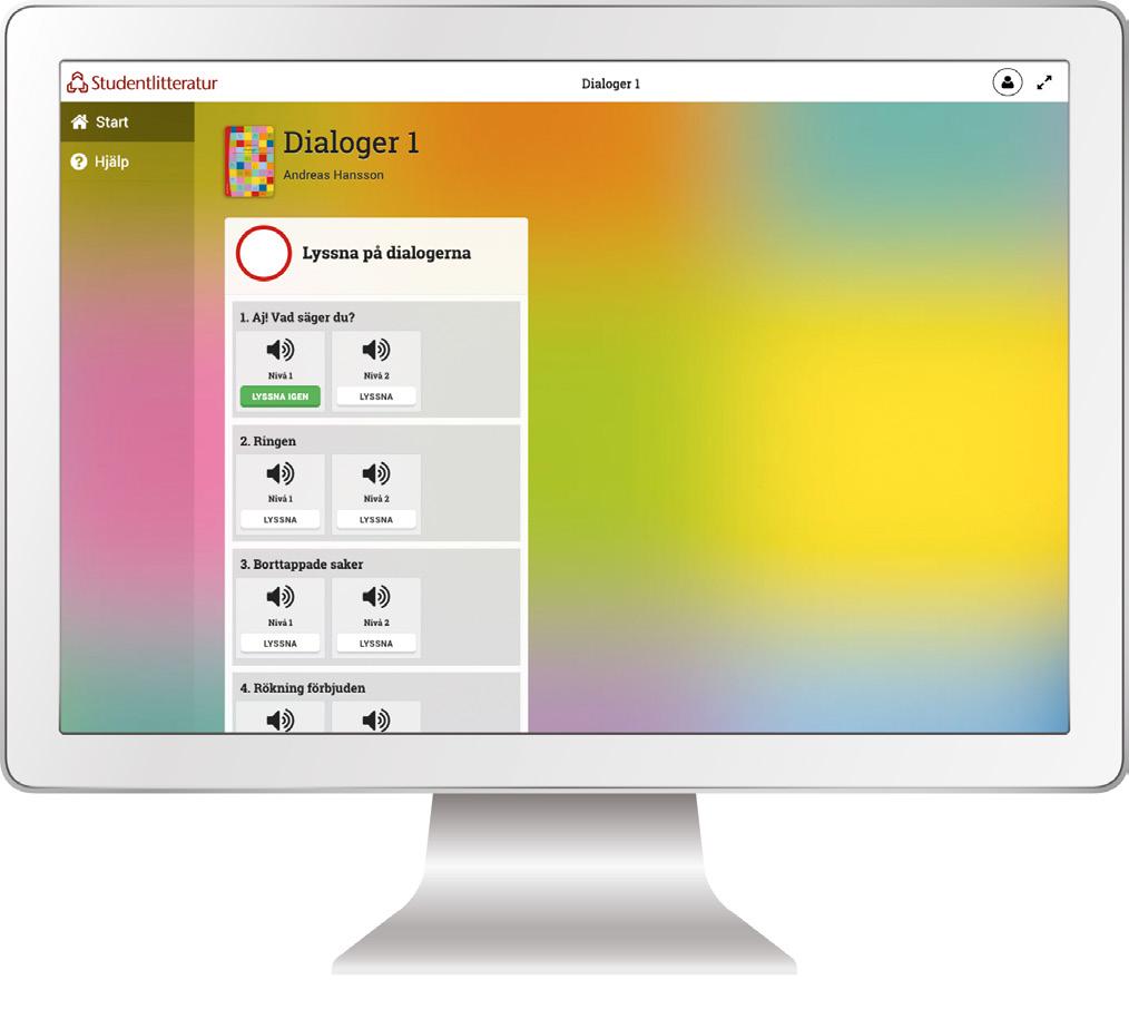 Alla dialogerna går att lyssna på i den digitala del som hör till boken. Lyssna gärna flera gånger så blir det enklare att förstå hur ord och meningar uttalas. Lycka till!