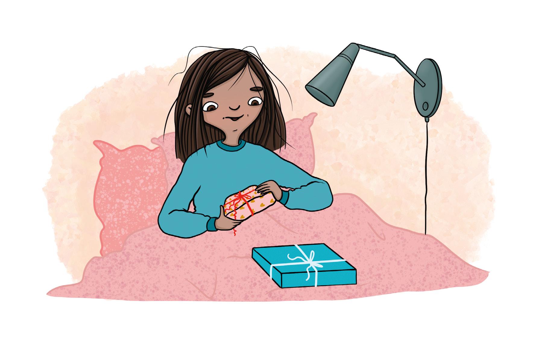 Luna öppnar sitt mjuka paket.