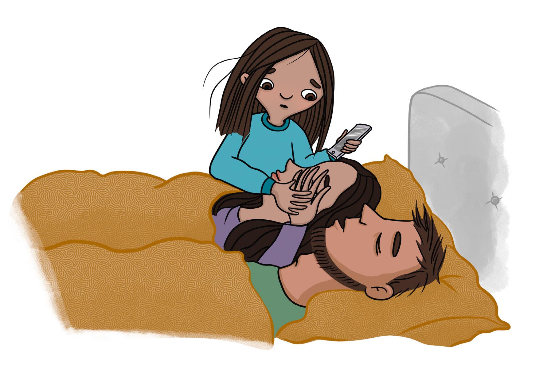 Luna smyger in till mamma och pappa.