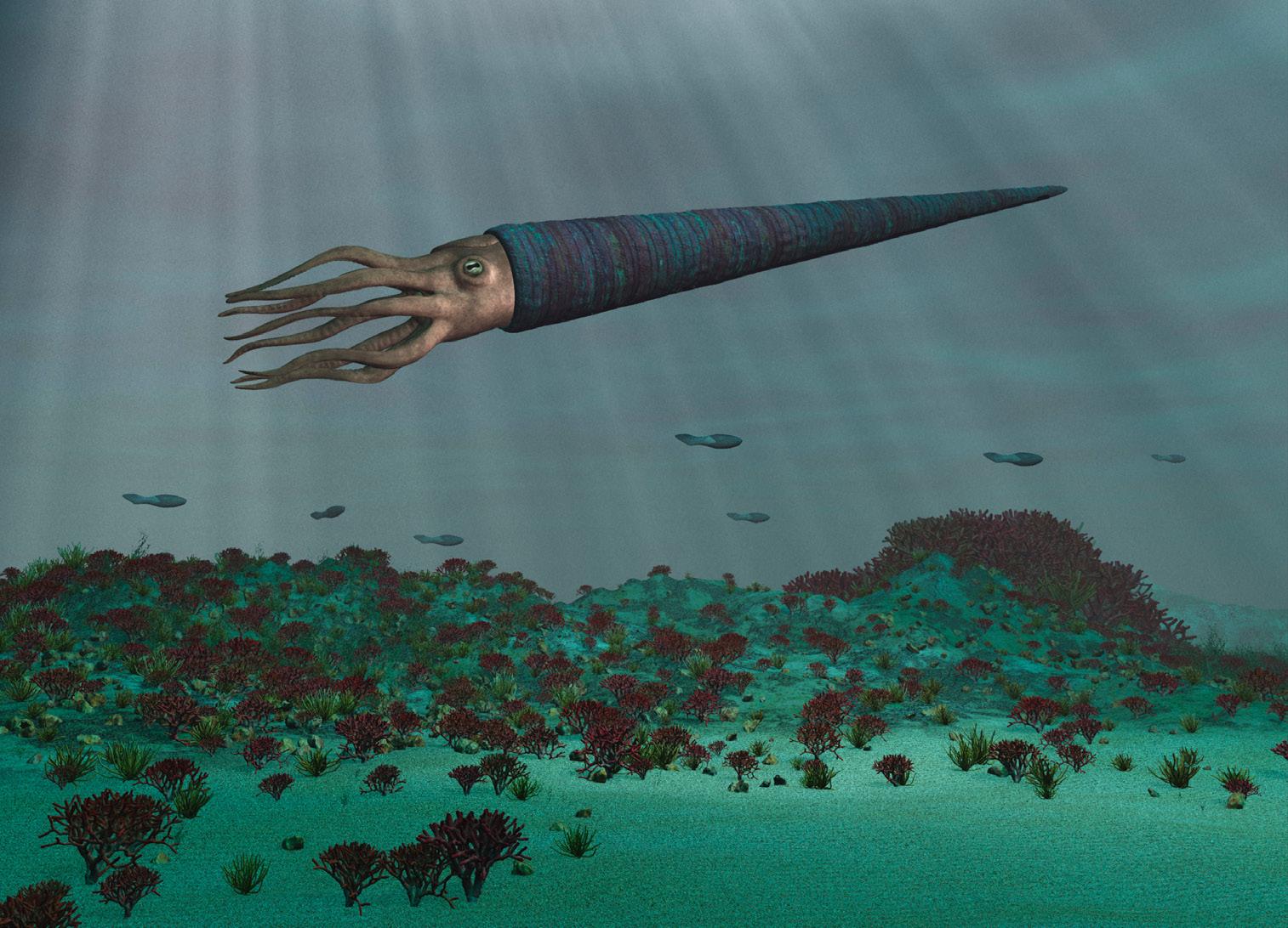 Det finns fossiler av ortoceratiter . Det var bläckfiskar