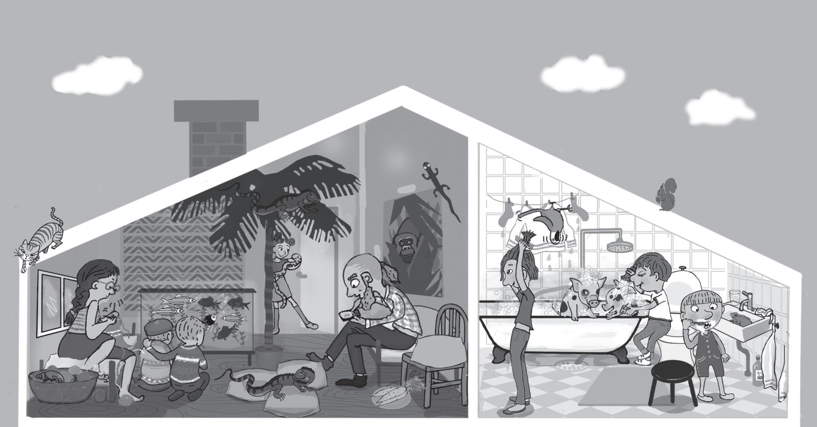 3 Stryk under vilka människor och djur som finns på platsen med gul penna.