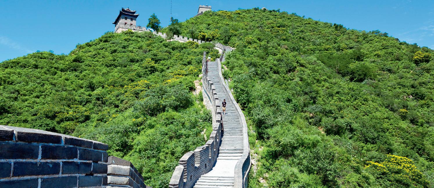 Om man ser den kinesiska muren uppifrån ser den ut som en orm som slingrar sig mellan berg och dalar i Kina. Muren är världens längsta byggnadsverk. Den är omkring 9 000 km lång. Större delen av muren är mellan 6 och 15 meter hög. På många platser håller muren på att rasa, men man har reparerat och bevarat stora delar av muren.