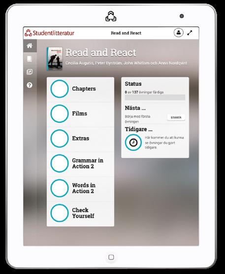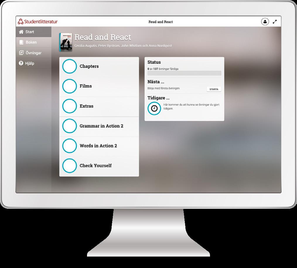 Read and React är ett elevpaket som består av två delar: elevhäfte och digitalt läromedel. På följande sidor kan du provläsa och bilda dig en uppfattning om såväl det digitala läromedlet som den tryckta delen.
