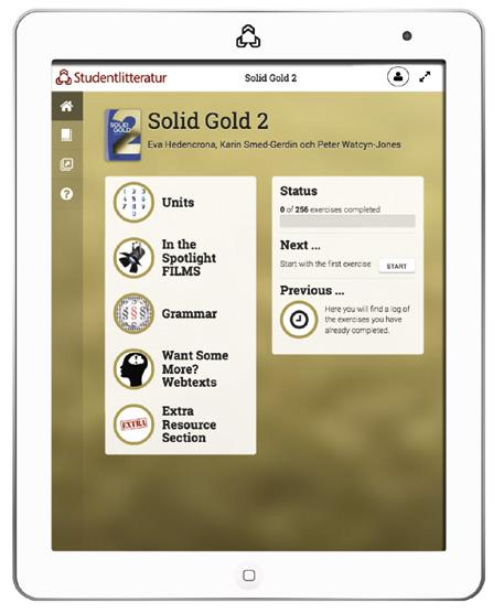 Solid Gold 2 är ett elevpaket som består av två delar: elevbok och digitalt läromedel. På följande sidor kan du provläsa och bilda dig en uppfattning om såväl det digitala läromedlet som den tryckta delen.