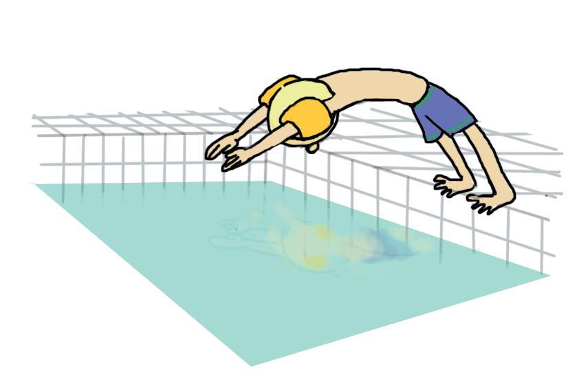 Händerna når vattnet först, sedan huvudet och resten av kroppen.
