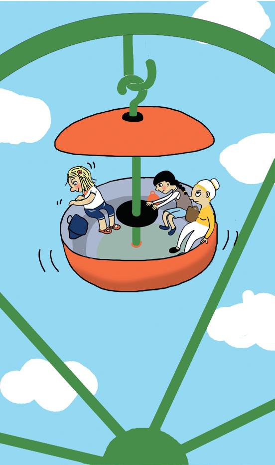 Det blir precis som Faria har önskat. Korgen där hon sitter stannar allra högst upp. Den gungar fram och tillbaka.