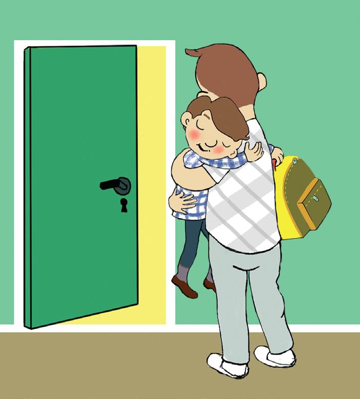 Stefan kände sig alldeles varm i magen. Det här skulle nog bli bra. Sedan tog han kepsen, kramade pappa och sa att han skulle springa ner och leka med några nya kompisar på gården. Pappa log.