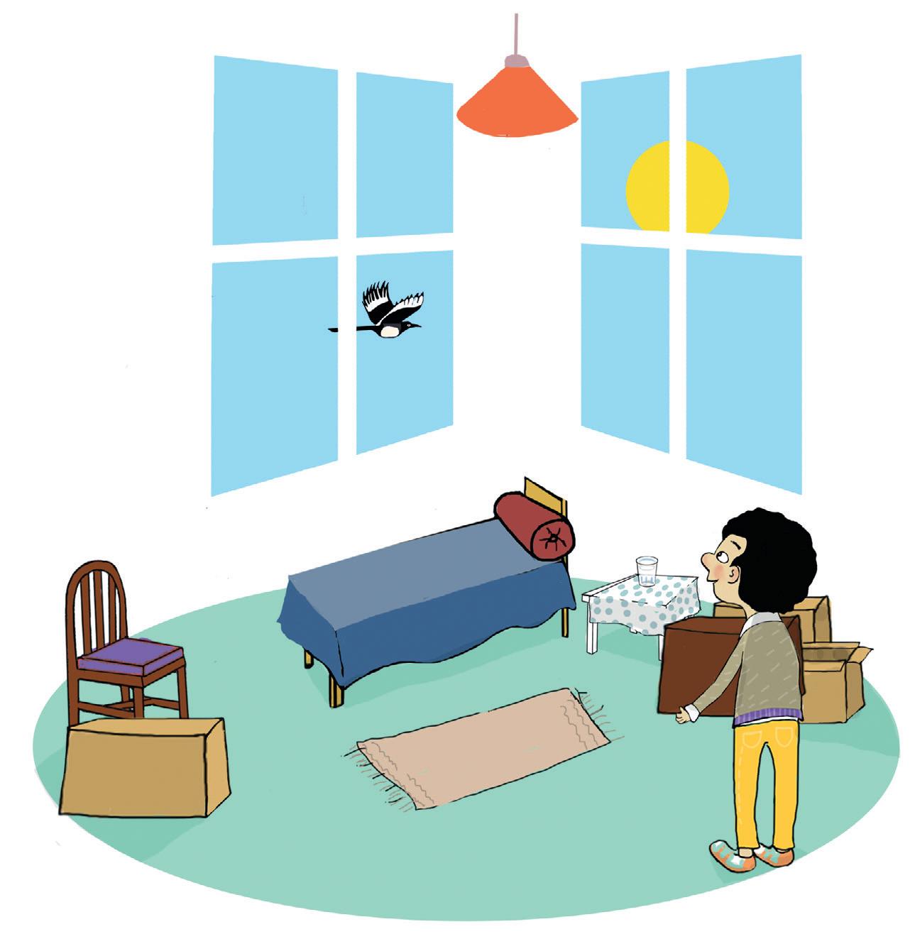 Pappas rum var ungefär lika stort. Det fanns också ett vardagsrum med utgång till en stor balkong. Och ett kök och ett badrum med badkar. Stefan tyckte om lägenheten. Den var stor och ljus. Den kändes vänlig på något vis. Fast det stod fortfarande en massa flyttkartonger i vardagsrummet. Stefan och pappa hade inte orkat packa upp alla ännu.
