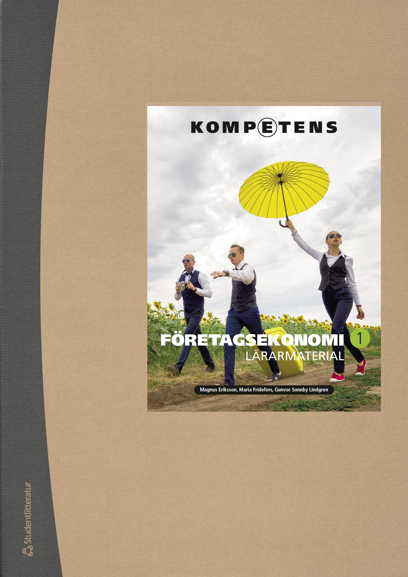 Läromedlet Kompetens Företagsekonomi 1 består av fyra delar: Fakta, Övningar, Kommentarer och lösningar och detta Lärarmaterial