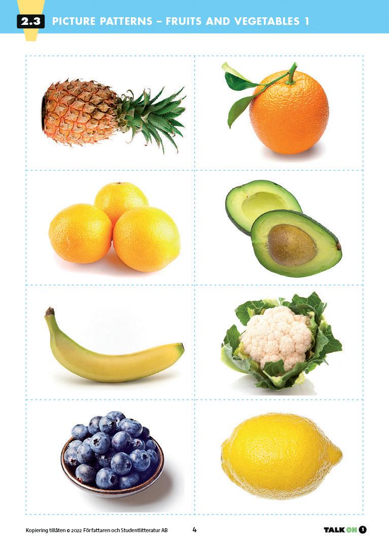 Talk On 1 inleds med en utförlig metoddiskussion och sedan beskrivs de fyrtio övningarna stegvis. Bilder och kopieringsunderlag hittar du i den digitala resursen.