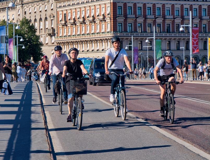 NÀr vi gÄr eller cyklar blir det inga avgaser i luften. Det Àr bÀttre för miljön att Äka tÄg Àn att flyga.
