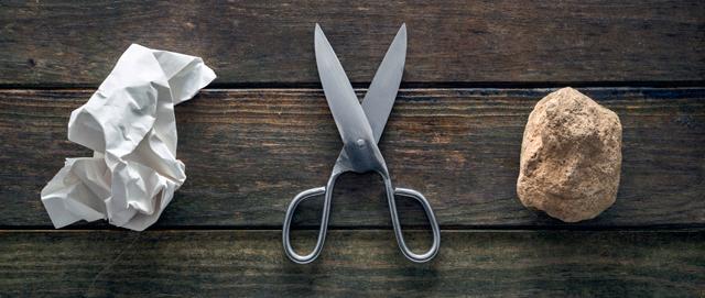 a) att vinna huvudvinsten på lotto eller att vinna i sten, sax och påse