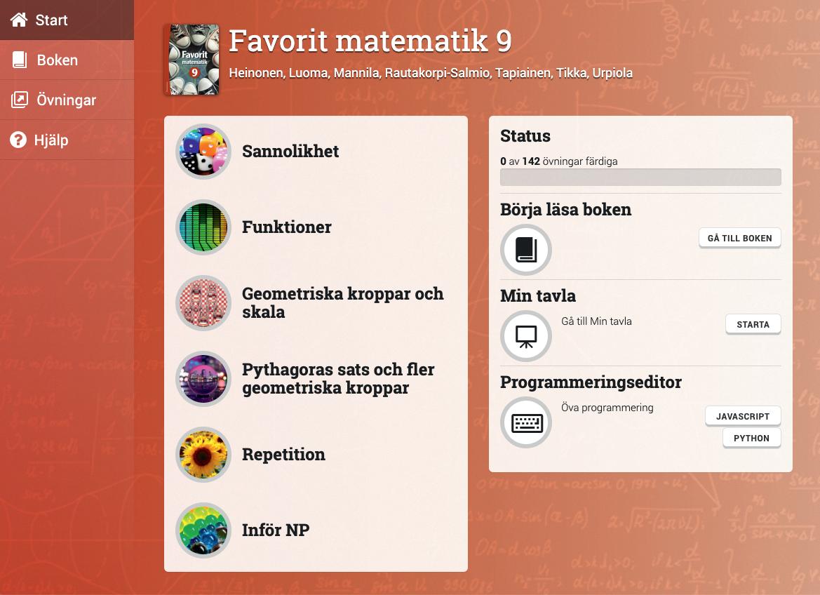 Favorit matematik 7–9 bygger på den beprövade, finska matematikserien Pii och är översatt och bearbetad för svenska förhållanden.
