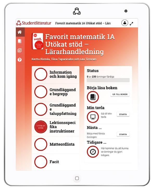 Favorit matematik 1A Utökat stöd innehåller tips, framtagna med tanke på undervisning av elever som behöver utökat stöd. Tanken är att Favorit matematik 1A Utökat stöd ska komplettera innehållet i den ordinarie Favorit matematik 1A – Lärarhandledning , eftersom också den innehåller flera praktiska övningar, spel och lekar som passar elever i behov av extra hjälp och stöd.