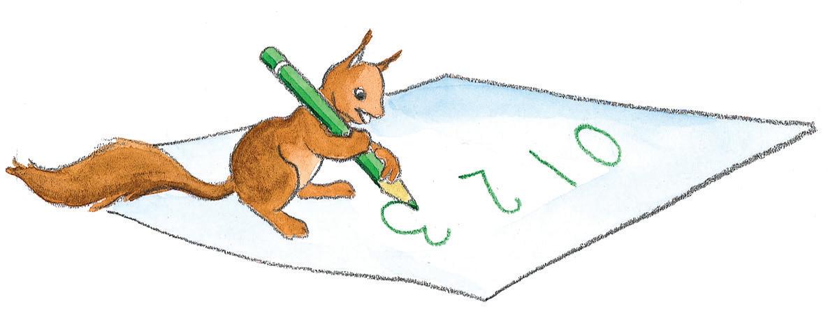 Instruktioner för att utveckla sambandet mellan antal, talets namn och talets beteckning med siffror finns på sidan 18 i handledningen. Tips på hur du introducerar och övar tallinjen finns på sidan 22. Längst ner på kopieringsunderlag 2a finns en tallinje över talområdet 0–10 som går att klippa ut och vid behov fästa på elevens bord. På den här tallinjen har mellanrummen märkts ut på det sätt som används i elevboken. Den tallinje som finns i kuvertet med det laborativa materialet är likadan som de tallinjer som används i Mera Favorit matematik elevbok.