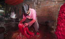 Det krävs mycket vatten när man färgar tyg.