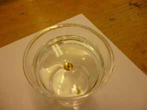 När alla har lyckats samlar du eleverna kring en mugg med minst ett flytande häftstift i. Ta lite diskmedel på en tandpetare och berätta att du kommer att doppa ner den i vattnet. Innan du doppar tandpetaren, frågar du eleverna vad de tror kommer att hända. Ge dem följande alternativ: