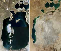 Aralsjön i Asien var tidigare världens fjärde största sjö. Idag finns nästan bara giftig träskmark kvar. Sjön har använts till att vattna ris- och bomullsfält.
