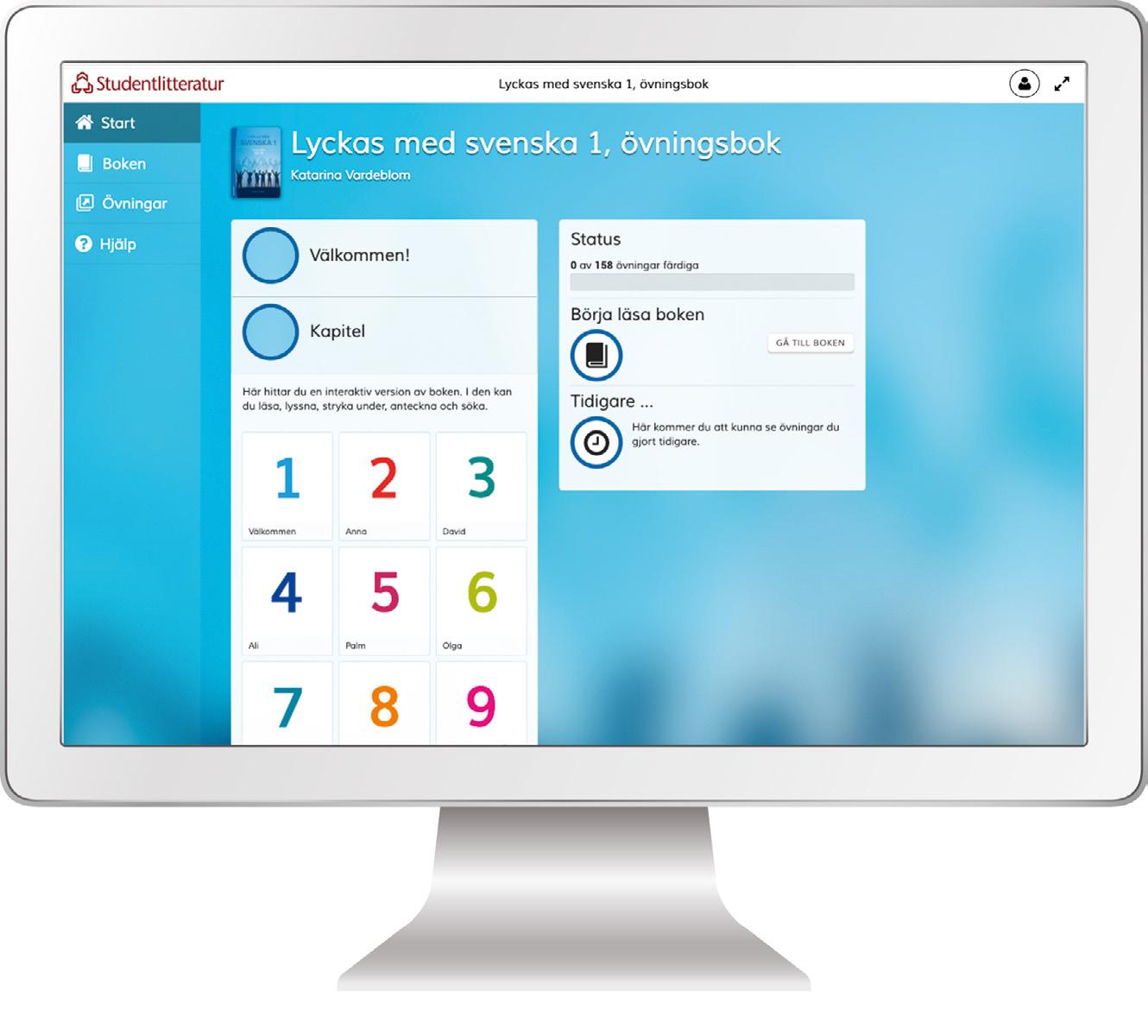 Här hittar du övningar kopplade till textbokens kapitel Det finns många och varierande övningar som tränar dina färdigheter i att tala, lyssna, läsa och skriva I slutet av varje kapitel i den digitala delen finns en självvärdering (checklista) där du kan kontrollera om du klarat av kapitlets mål
