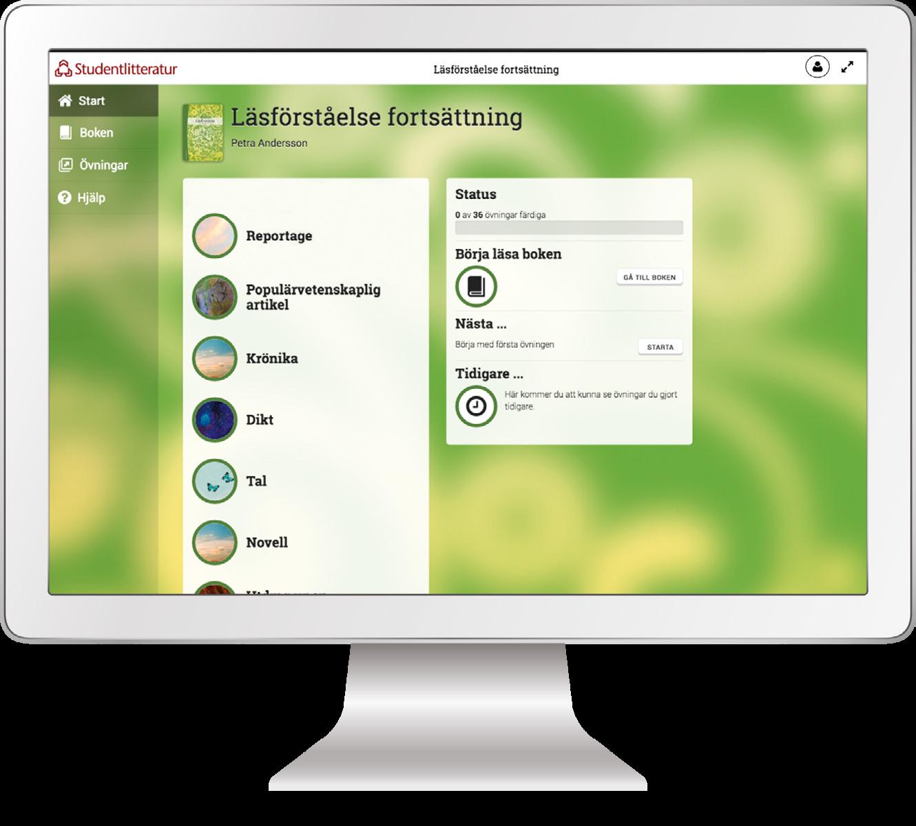 Läsförståelse Fortsättning är ett elevpaket som består av två delar: elevbok och digitalt läromedel. På följande sidor kan du provläsa och bilda dig en uppfattning om såväl det digitala läromedlet som den tryckta delen.