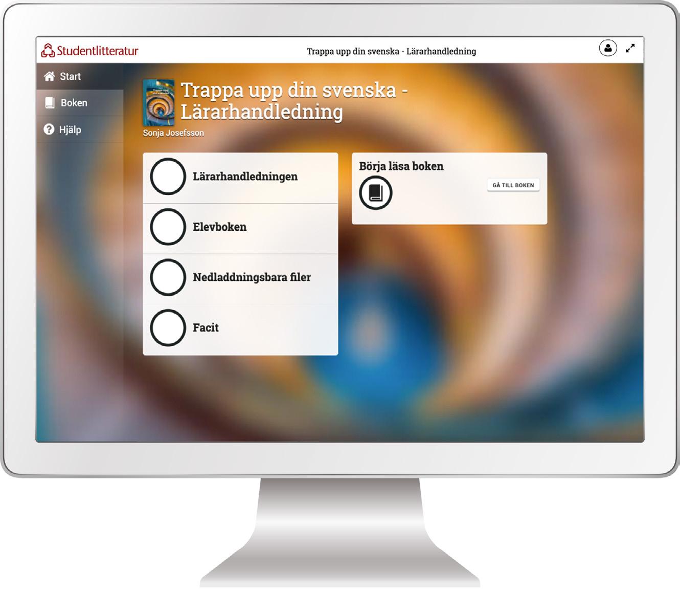 Trappa upp din svenska är avsedd för elever som läser SVA GRUND. Läromedlet bygger på en tydlig cirkelmodell och lär eleverna att skriva texter i sex olika genrer. Med sin stöttande struktur ger Trappa upp din svenska eleverna en trygg guidning genom skrivuppgifter, läsförståelseövningar och muntliga aktiviteter.