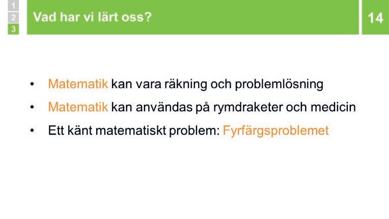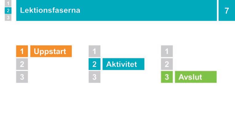 Lektionerna inleds alltid med en uppstartsfas. Här repeterar ni det viktigaste i föregående lektion,