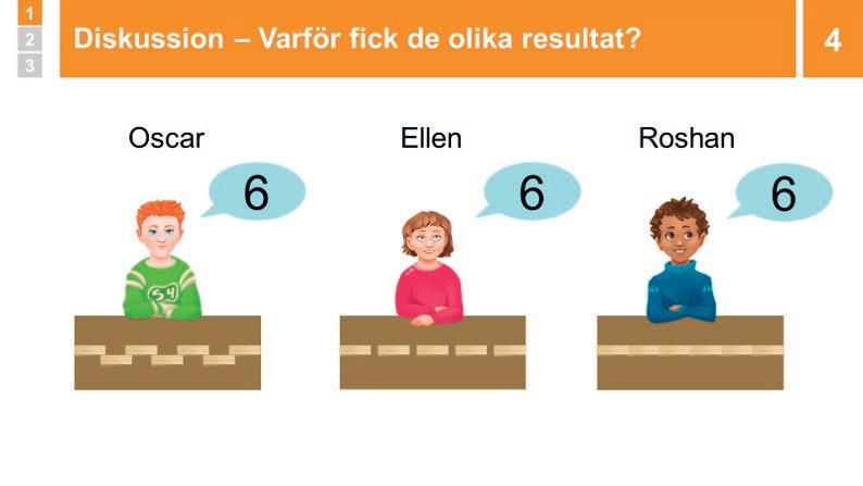 och här får eleverna möta innehållet i den nya lektionen, ofta genom en lärarledd genomgång med stöd av bildspelet. I aktivitetsfasen diskuterar, tänker, räknar och löser eleverna problem, ofta i grupp eller par. Läraren har en viktig roll under aktivitetsfasen i att utmana elever, ställa frågor för att uppmana tänkande och diskussion, samla information inför avslutningen av lektionen, etc. Naturligtvis finns det också tid för enskild färdighetsträning. I avslutsfasen sammanfattar du lektionen tillsammans med eleverna och lyfter upp den centrala matematiken. Ofta gör eleverna en avslutslapp där de får visa vad de lärt sig och samtidigt tänka igenom det mest centrala i lektionen.