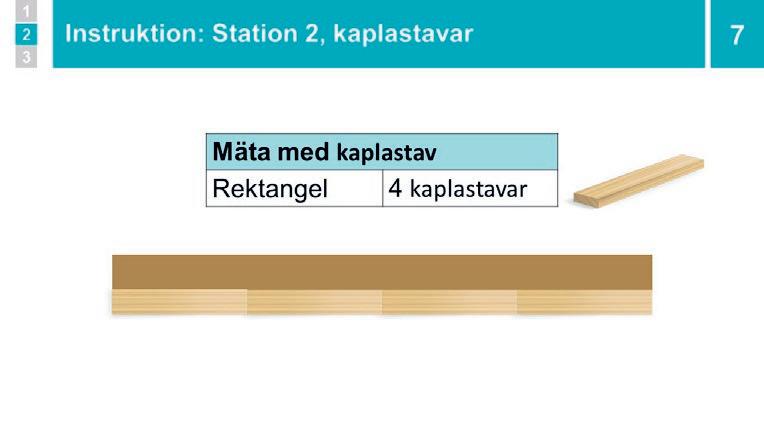 Station 2, kaplastavar: Som ovan, fast här mäter de med kaplastavar och fyller i på s. 5.