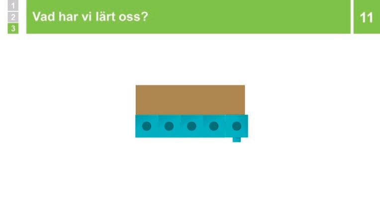 Visa en kaplastav för klassen. Berätta att Oscar, Ellen och Roshan ska mäta med kaplastavar hur långa deras bänkskivor är. Klicka, så mäts det i bildspelet.