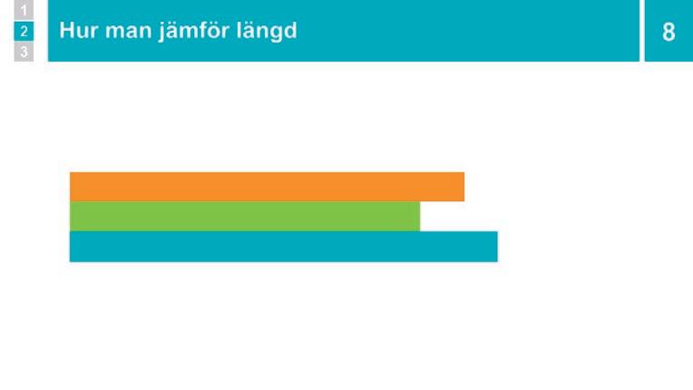 Om du märker att eleverna inte är noggranna i sina jämförelser behöver du hjälpa dem med det. Var tydlig med att när man gör direkta jämförelser så måste föremålen utgå från samma nollpunkt, så att de jämförs kant i kant.