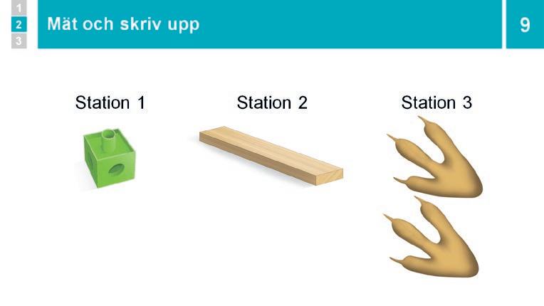 Grupparbete: Mät och skriv upp Eleverna arbetar i grupper och mäter vid de olika stationerna