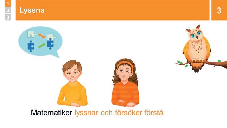 För att kunna bedriva en rik matematikundervisning är det viktigt med ett tillåtande och respektfullt klassrumsklimat där eleverna vågar berätta vad de tänker, vågar göra fel och är tysta och lyssnar när någon annan har ordet. Strukturer och resurser som stödjer detta arbetssätt finns inbyggt i materialet. Till din hjälp har du även karaktären Professor Uggla som dyker upp i bildspelen och hjälper till att etablera de viktigaste klassrumsnormerna.