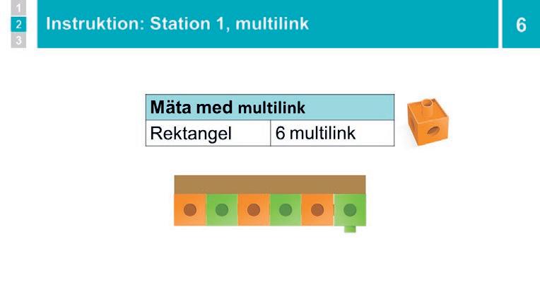 Station 1, multilink: De ska mäta längden på föremålen i kopieringsunderlagen med multilink. Elevboken s. 4.