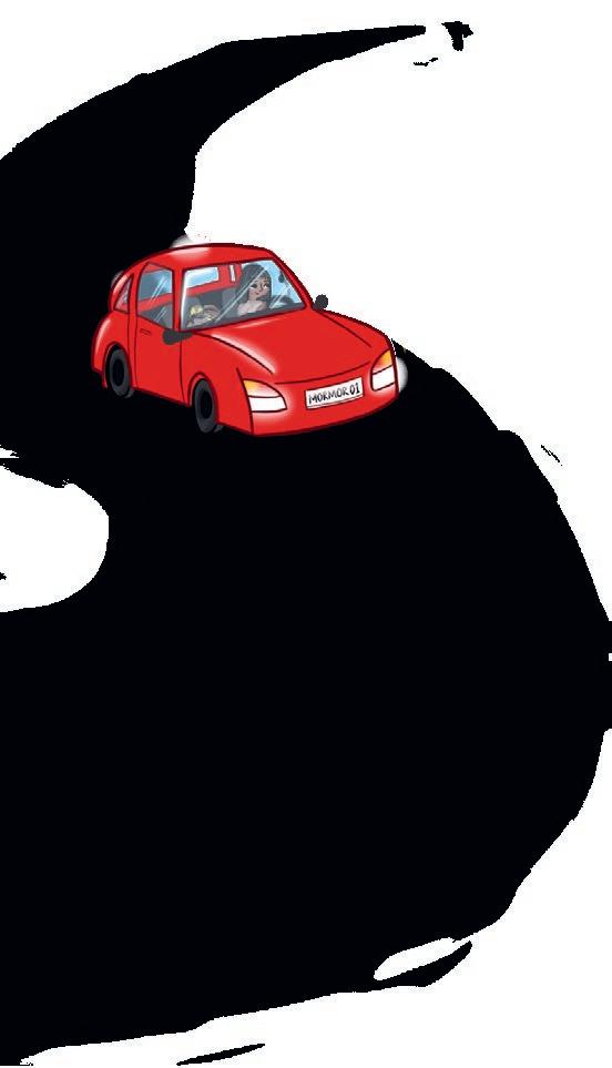Då kommer en röd bil.