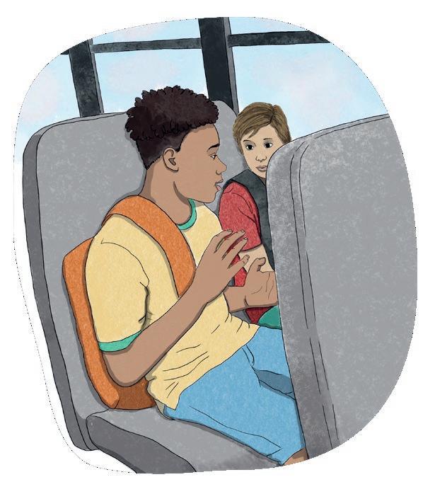 5. Who does Kevin sit with on the bus? Where do they sit?