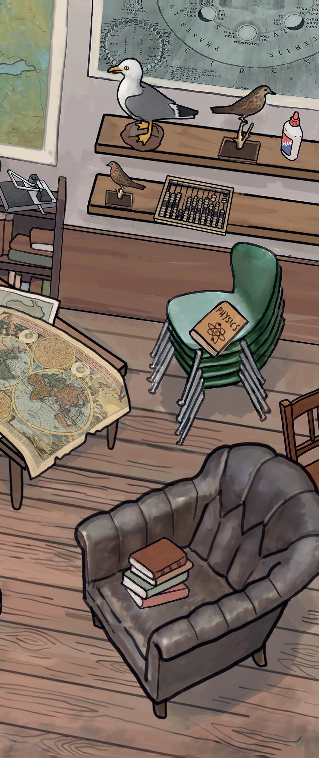 The school seemed even bigger now that it was just him. Empty. It had a lonely, spooky feel to it. It was an old school, too, full of stairs and big windows. It almost felt like a museum. He tried to remember which classroom was his. There had been a photo of a large owl next to the door. He remembered that.