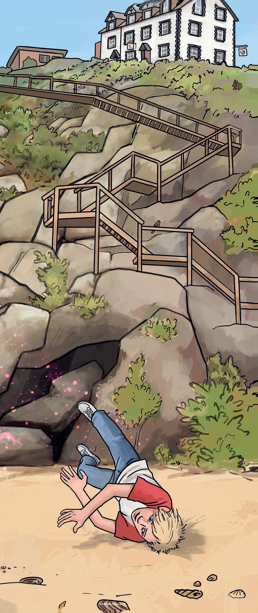 ‘Hi, Sam’, said the girl. ‘I’m Matilda. And that’s my brother, Liam. Don’t mind him. I’ve tripped over that stupid old ball so many times. He brings it everywhere’.