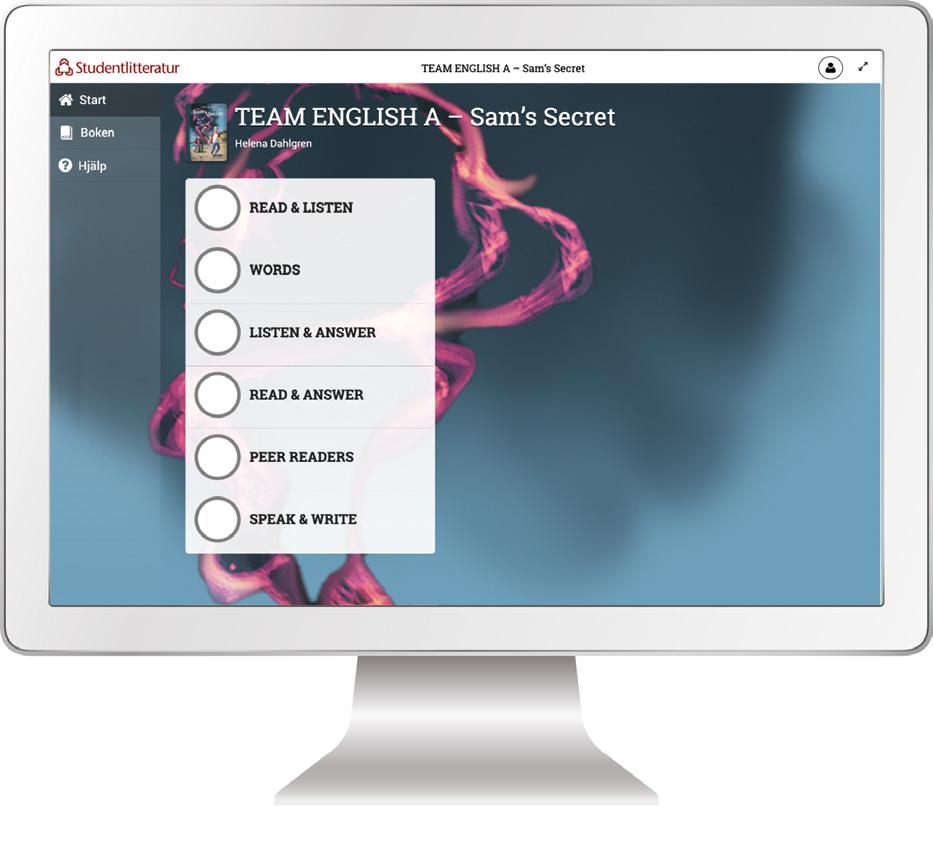 Team English är ett läromedel för årskurs 4-6 med fokus på kooperativt lärande och den gemensamma läsupplevelsen. Med den lockande fantasyberättelsen Sam’s Secret på två olika nivåer, och en Activity Book som verkligen aktiverar eleverna i alla färdigheter, lär sig eleverna mer engelska tillsammans.