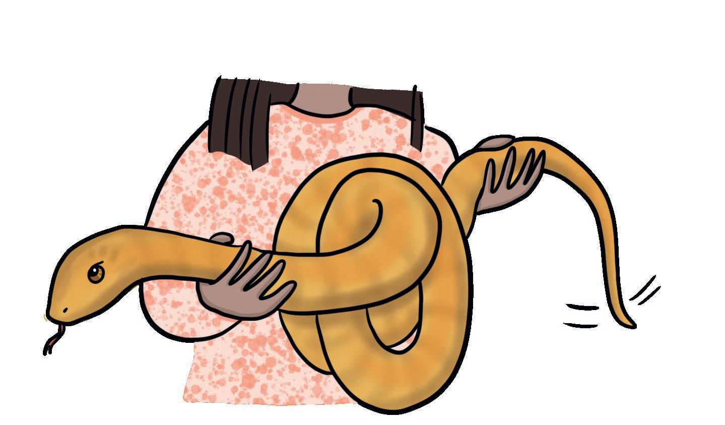 Han Àr inte van att hÄlla ormar och dÀrför sitter han stilla som en staty.