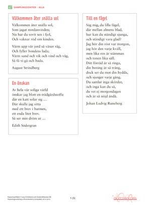 6. VĂ€lj bland dikterna och skriv en samplingsdikt.