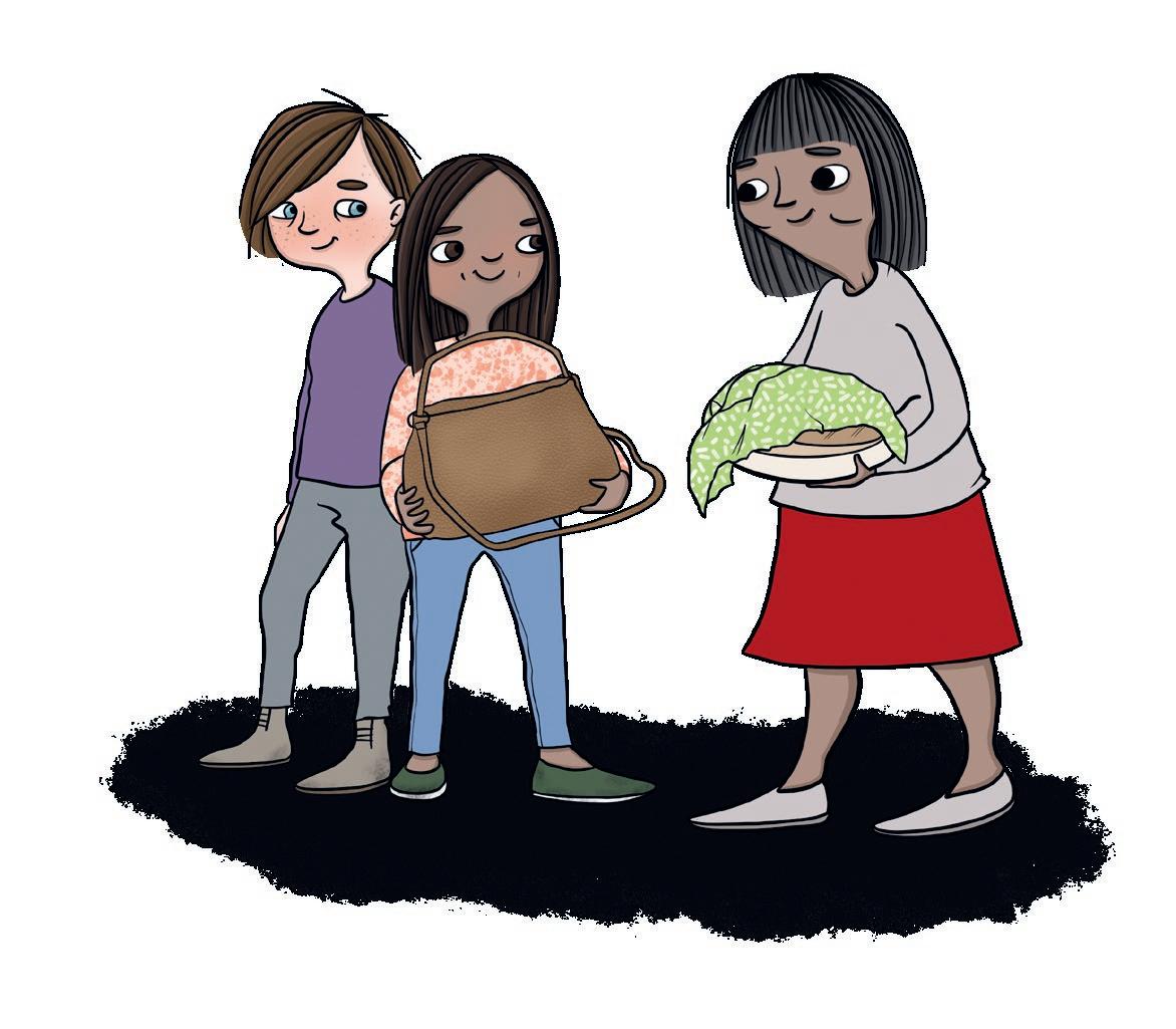 Mormor blir glad nÀr Otis och Luna möter henne. Hon har bakat. Luna bÀr mormors vÀska.