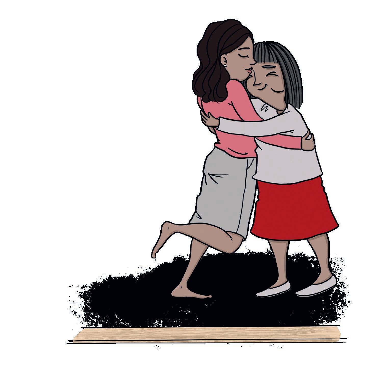 – Å! Världens bästa mottagande, säger hon och kramar om dem.
