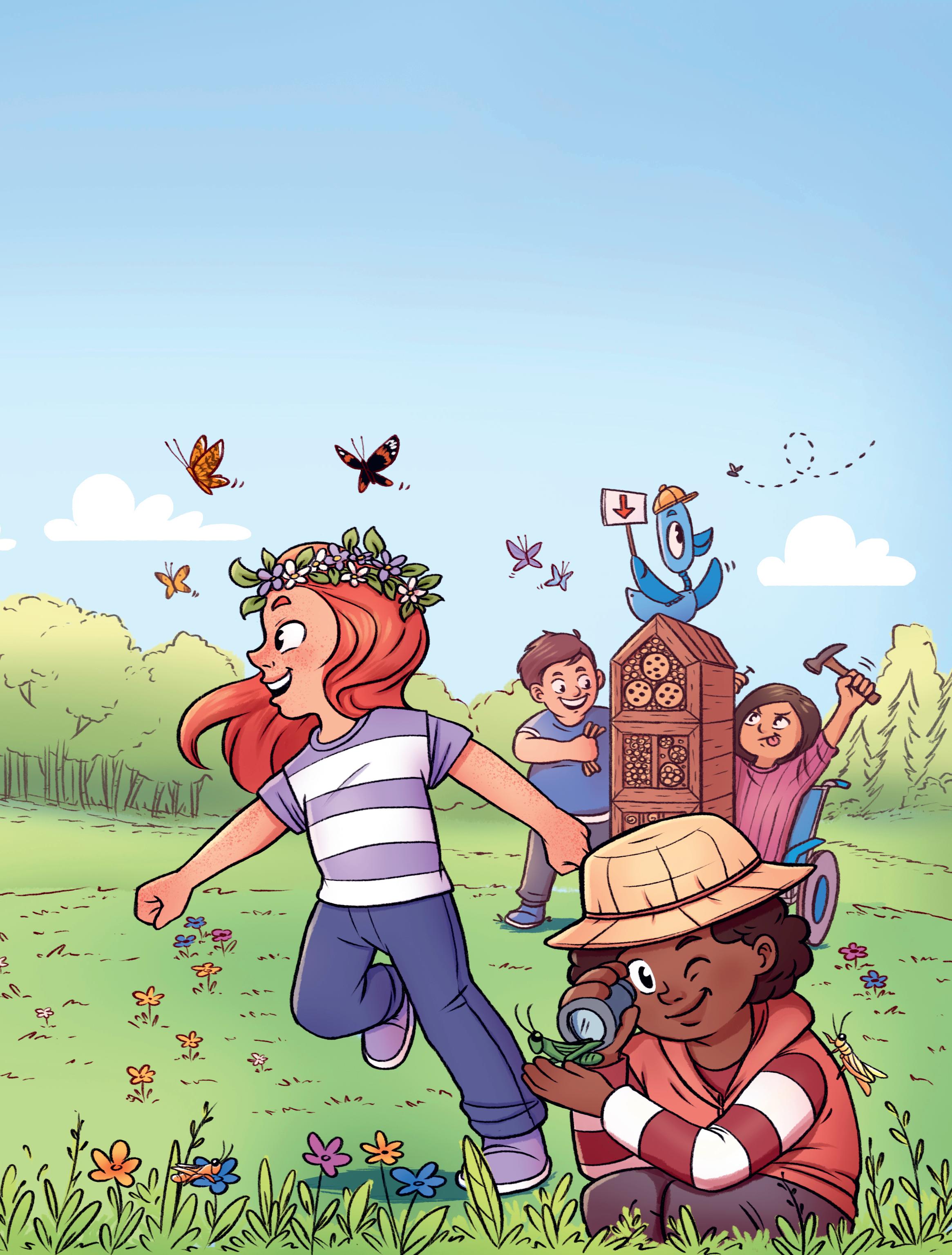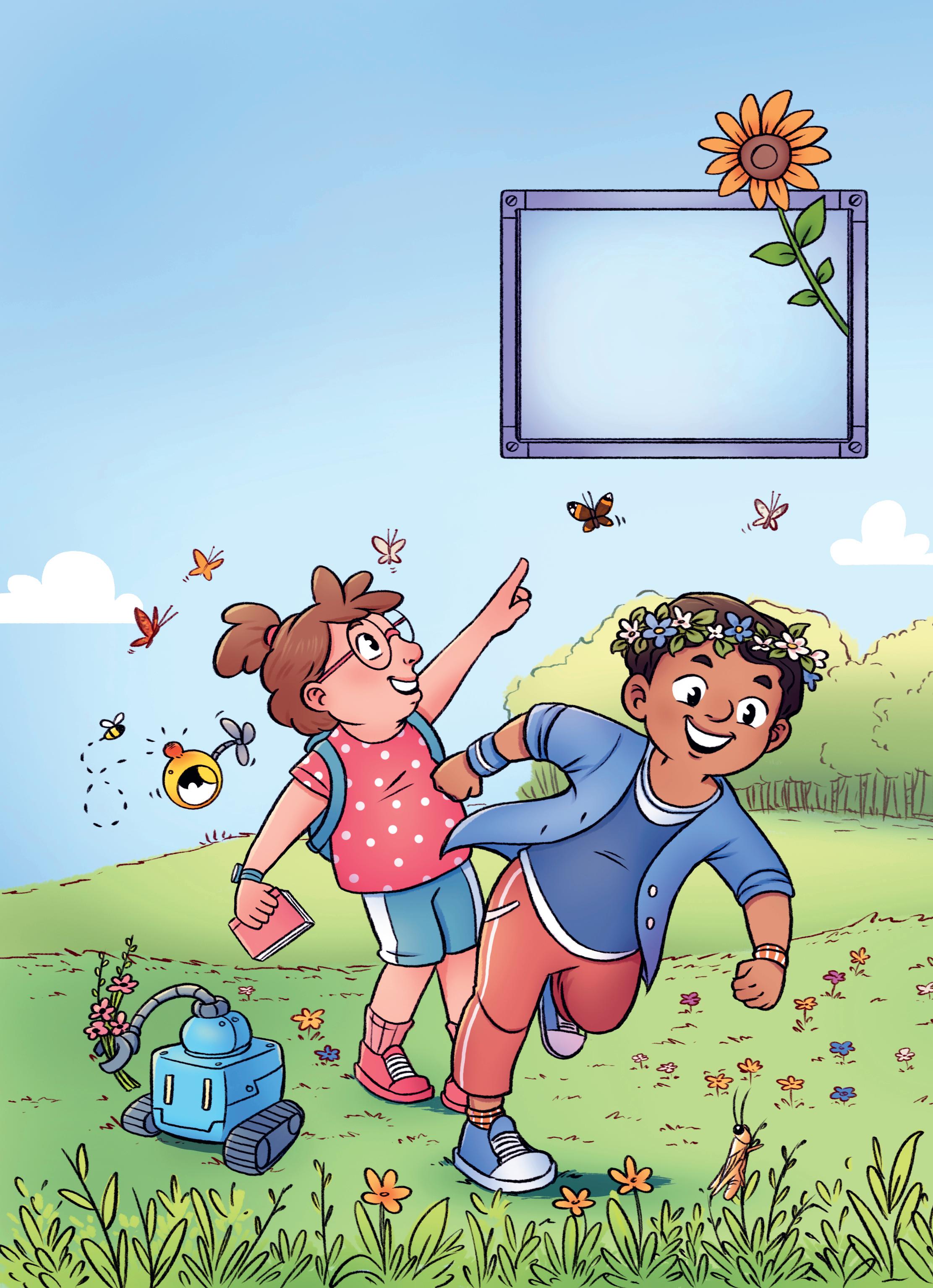 Figurerna Pi och Uppsnapparen gör eleverna sÀllskap nÀr de upptÀcker bÄde matematik och sina egna superkrafter.
