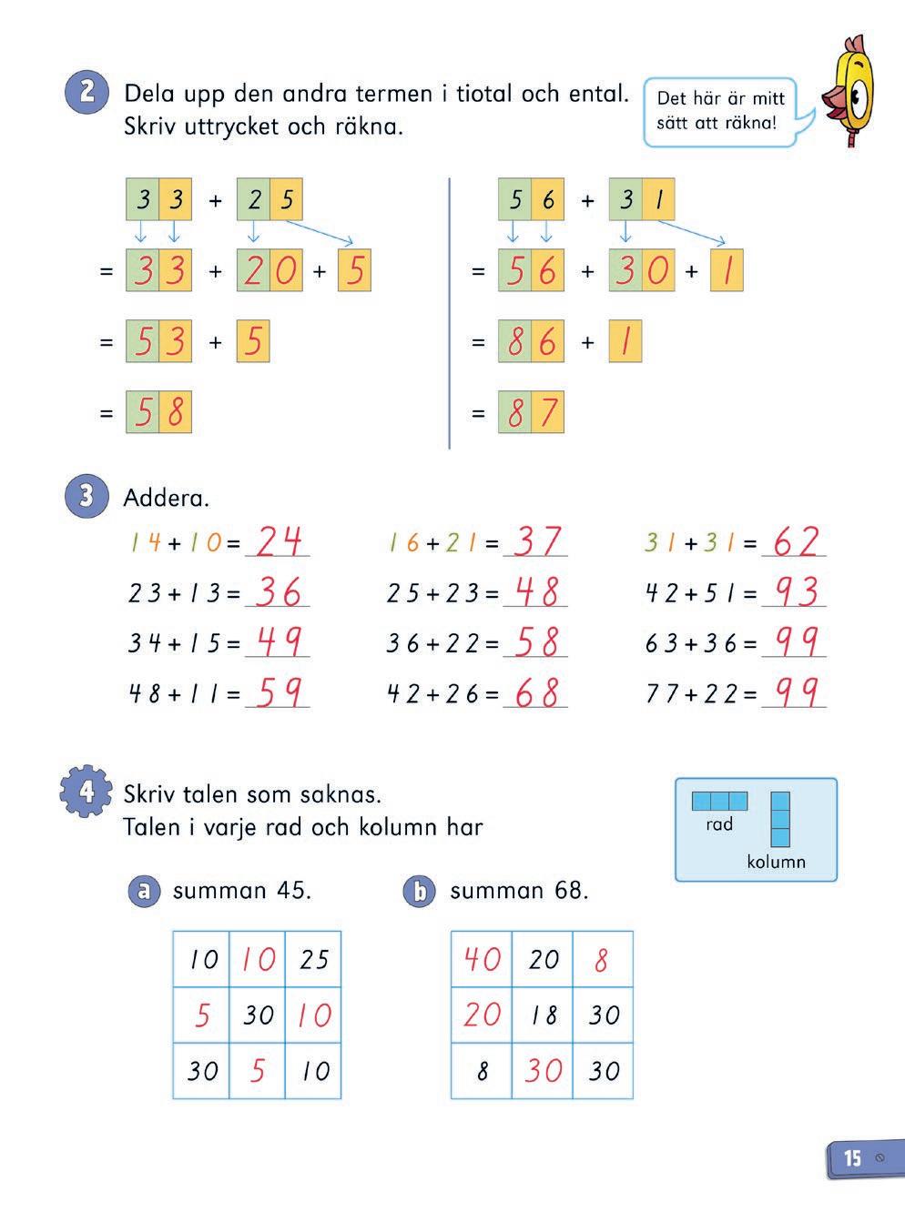 1 Tipsa eleverna om att börja med en kolumn eller en rad där det bara finns en tom ruta, exempelvis kolumnen 13 + 23 + _ = 49.
