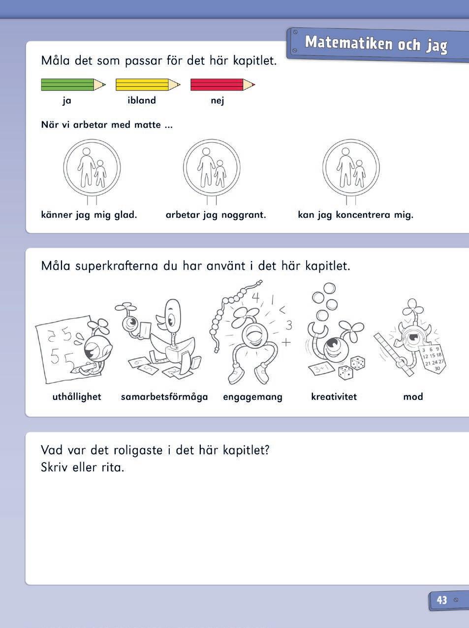 Den tredje delen i Matematiken och jag ger eleverna möjlighet att rita eller skriva vad de tyckte mest om under kapitlet.