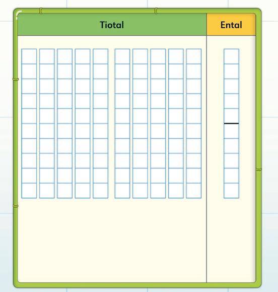 9 Här måste eleverna undersöka mönstret i talföljderna. Tipsa dem om att börja med två givna tal som ligger bredvid varandra. Den övre talföljden ökar med 12 (33 + 12 = 45), från vänster till höger. Den nedre talföljden minskar med 16 (94 – 78 = 16), från vänster till höger.