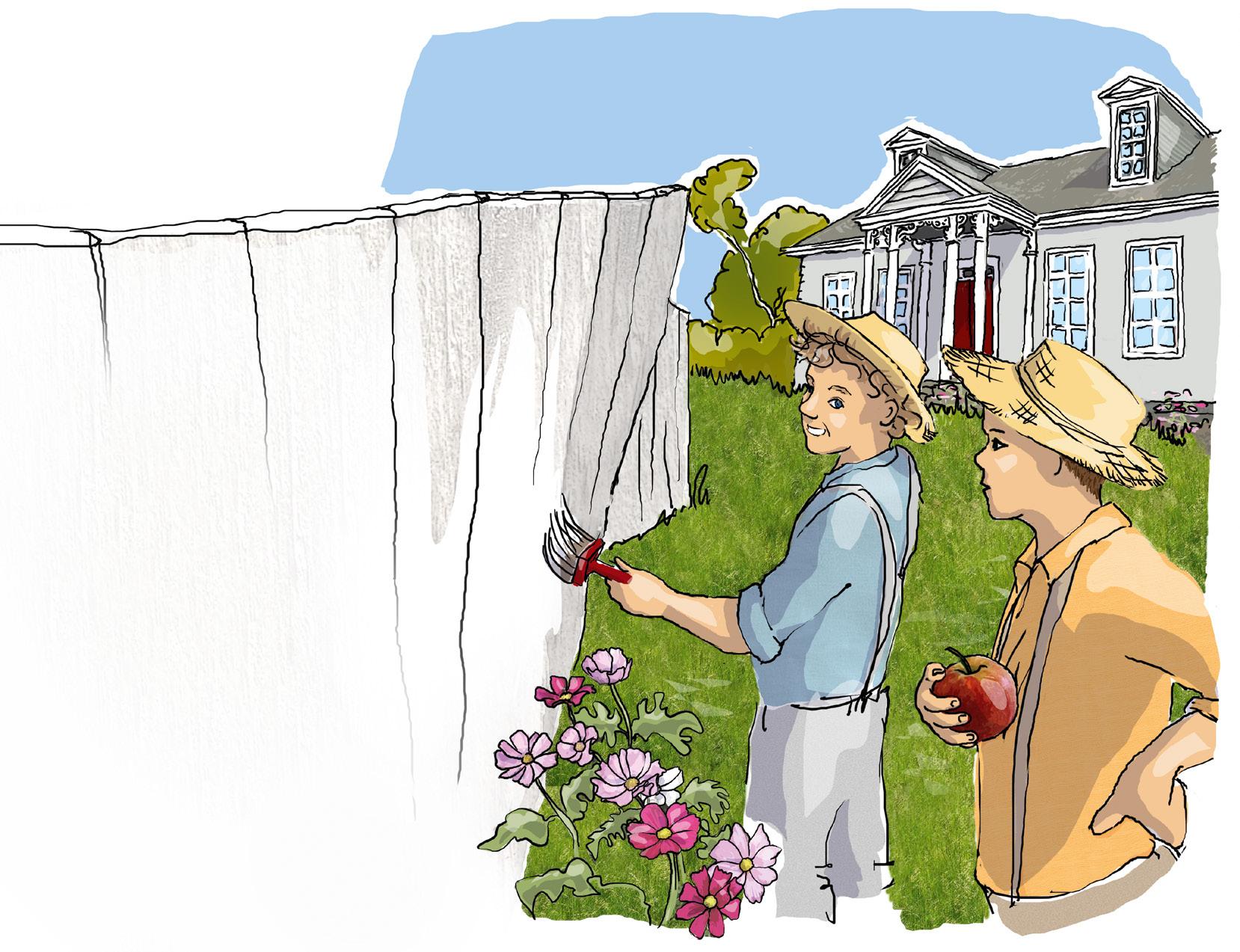 Tom målar ett staket skönlitteratur hjälpa till hemma verb: like + ing-form